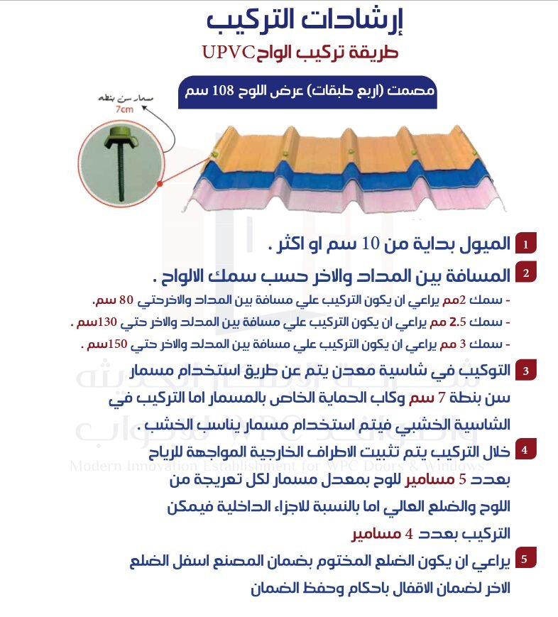 لأول مرة في السوق السعودي تقدم لكم شركة الابتكار ألواح مصمت من مادةUPV بديل الصاج المعرج تستخدم كبديل للصاج المعرج في تغطية الهناقر والمصانع والمظلات والمخازن والأسواق المفتوحة ومراكز خدمة السيارات وغيرها .